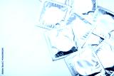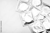 Condoms in shiny packaging on a white background. Contraceptives for men.