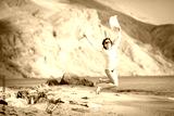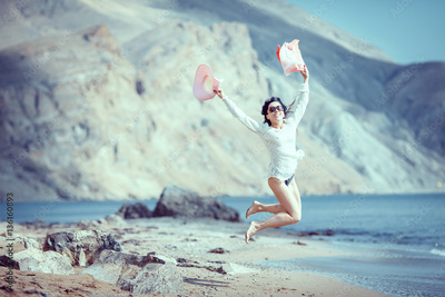 Portrait of a beautiful carefree woman walking on beach