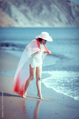Portrait of a beautiful carefree woman walking on beach
