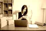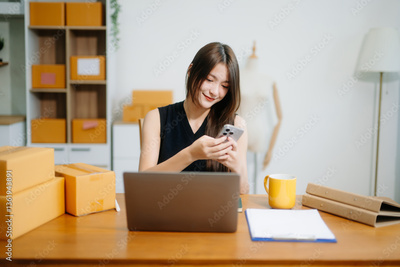 Startup small business SME, Entrepreneur owner woman using smartphone or tablet taking receive