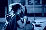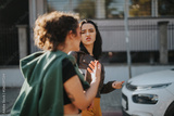 Two women appear to be engaged in an emotional and intense discussion outdoors in a city setting. The scene suggests a moment of confrontation or serious dialogue between friends or acquaintances.