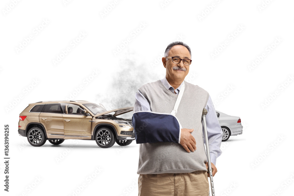 Man with car crash injuries