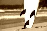 surfboards lays on the tropical beach