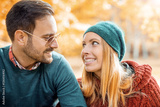 Romantic couple in the autumn park. Love and tenderness. Lifesty
