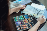 Girl in a beautiful white dress pastel drawing. Artist