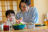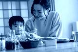 子供にご飯を食べさせる日本人の母親