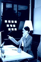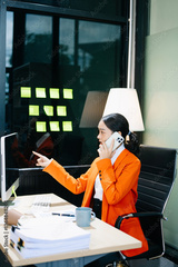 Business woman using tablet and laptop for doing math finance on an office desk, tax