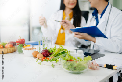 Nutritionists consulting on healthy food choices, meal planning, and wellness concepts