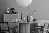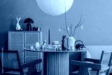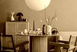 Elegant spring table setting with pastel eggs, ceramic bunny figurines, and modern rustic accents...