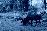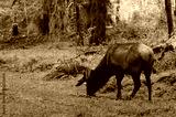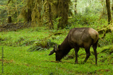 Roosevelt elk grazing in Hoh rainforest of Olympic national park, Washington state, USA
