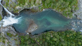 Aerial Vertical View Over The Surface Of A Mountain River Glomaga, Marmorslottet.