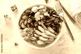 Healthy lunch bowl with grilled chicken, roasted cauliflower and fresh vegetables