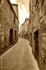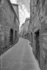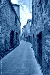 A typical narrow alley in the historic center of Pitigliano, Grosseto, Tuscany, Italy