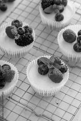 Mini cheesecakes baked in a muffin pan topped with fresh berries