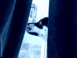 A dog in a window
