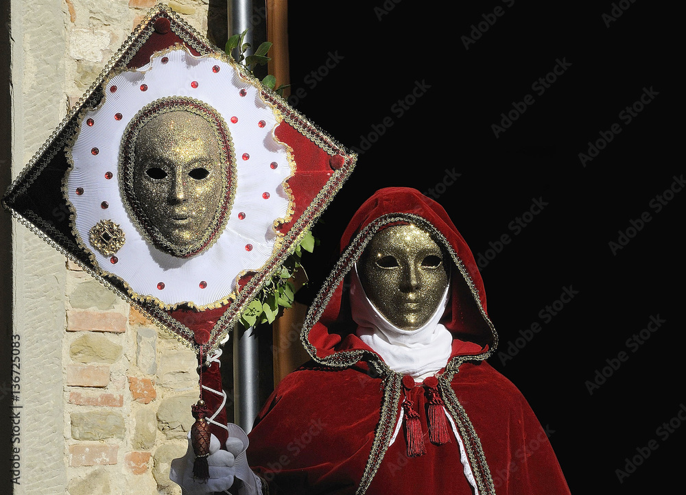 Superb carnival mask on parade in the Tuscan village of Castiglion Fibocchi, Arezzo, Tuscany, Italy
