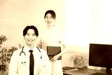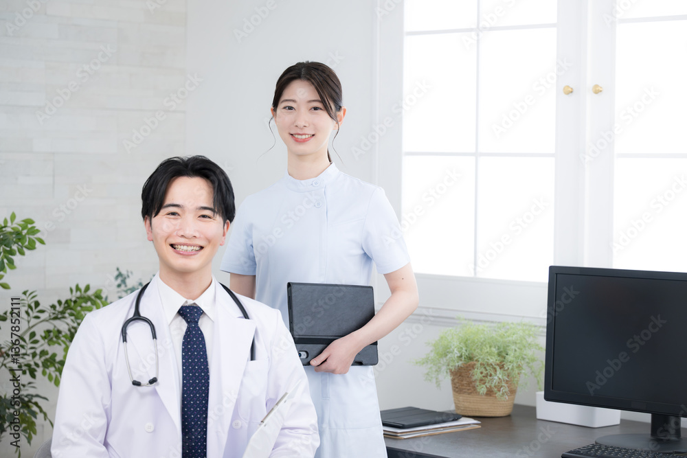 ドクターと看護師のクリニックイメージのカメラ目線