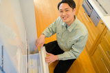 冷蔵庫を点検する日本人男性