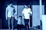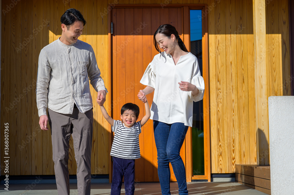 家の前で並ぶ日本人の親子