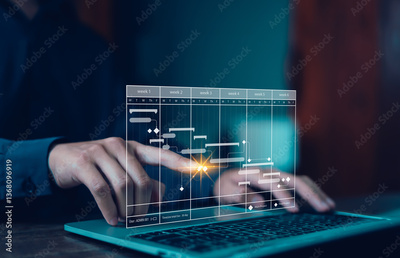 managing milestones on a timeline Gantt chart in technology online. concept of project planner in software, schedule plan management work update, and workflow. project, business, plan, schedule,