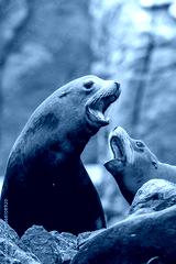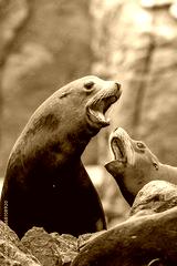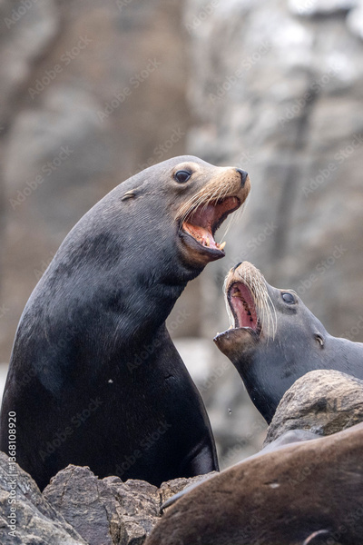 vertical photo of a Sea Lion colony in Cortez Sea Isla Cerralvo baja california sur mexico relaxing on the rocks