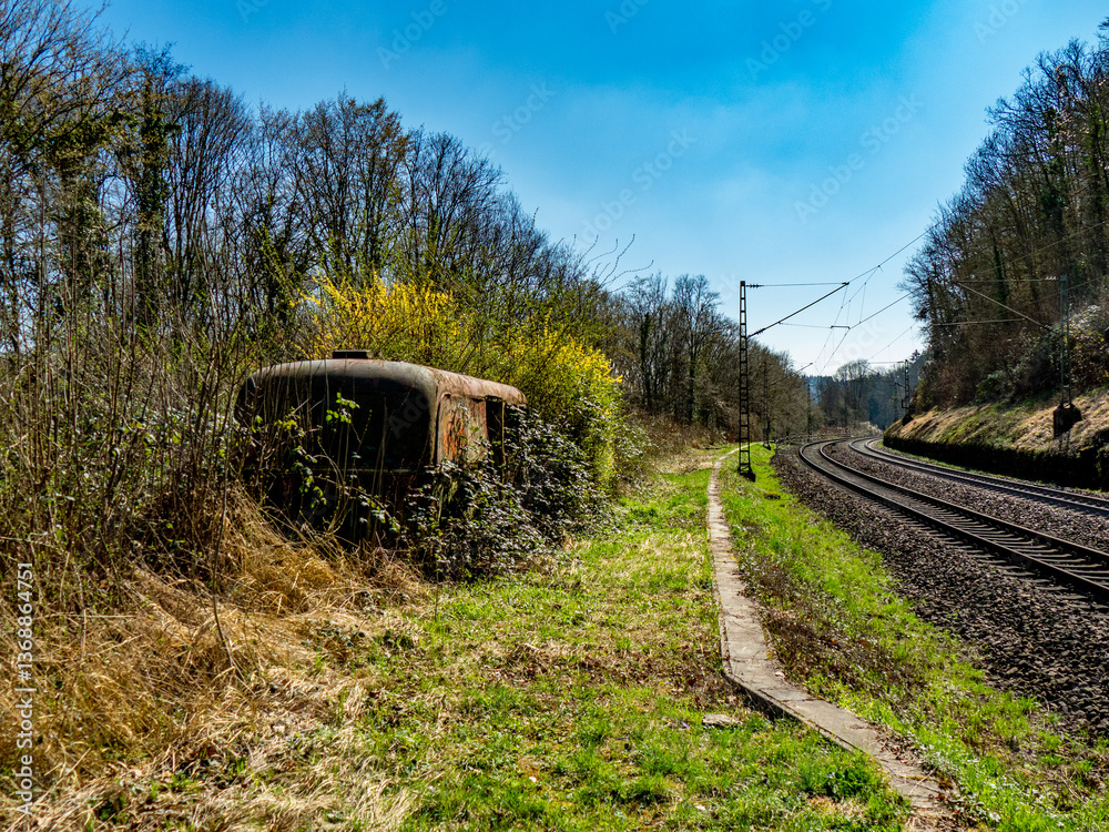Alter verlassener Schienenbus an einer Bahnstrecke