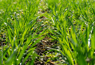 Vibrant blades of grass stretch upward in a field, illuminated by the warm sun on a beautiful spring afternoon, showcasing nature's freshness and vitality