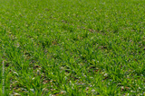 Expansive green field filled with healthy grass under bright sunlight, reflecting the vibrancy of nature and the importance of agriculture in this area