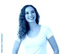 Hübsche junge Frau blickt glücklich zur Seite - isoliert auf weiß