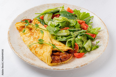 omelet with vegetables on the white plate