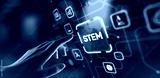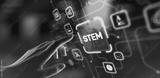 STEM Science, Technology, Engineering, and Mathematics Education, projection on a virtual screen, Business and Technology Concept.