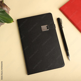 Sleek Black Notebook and Pen Arranged for a Minimalist Workspace Setup