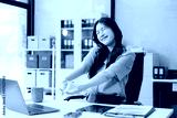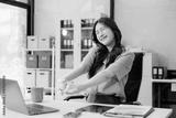 Overworked young Asian businesswoman office worker suffering from neck pain after had a long da