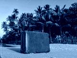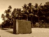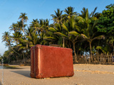Travel vintage suitcase is alone on a beach