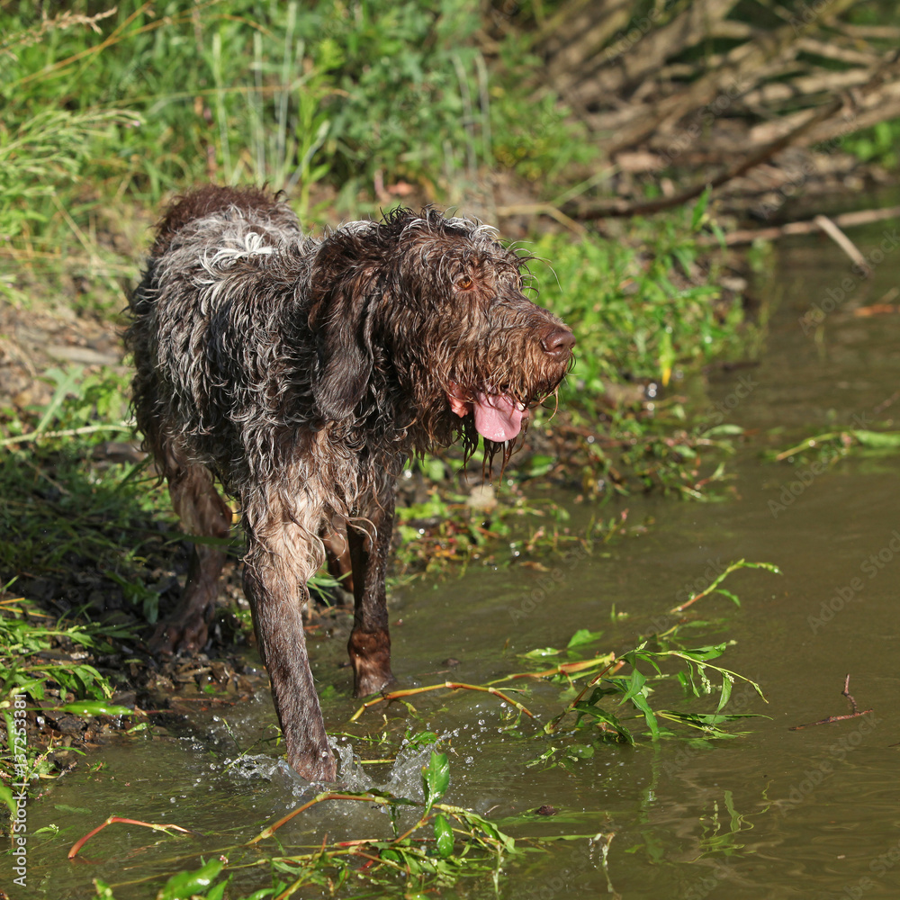 Italian wire-haired pointing dog in summer