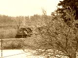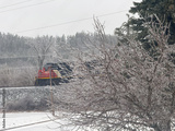 A train with a frozen winter landscape