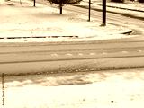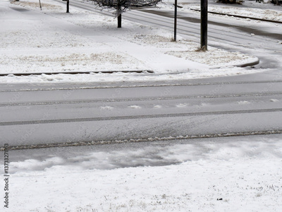An ice-covered street in the freezing rain