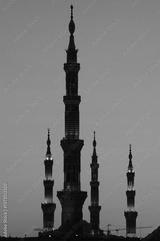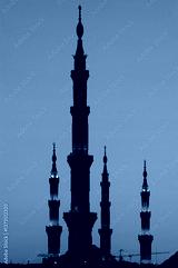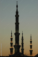 Minarets of the Masjid an-Nabawi Mosque, where the tomb of Prophet Muhammad is located, in Medina, Medina, Saudi Arabia.