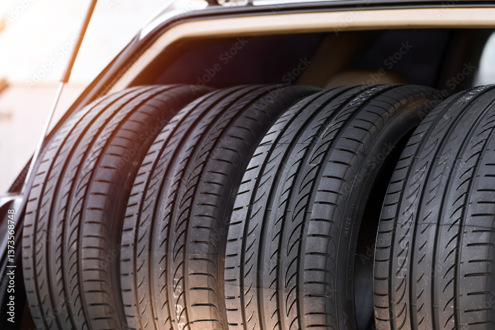 SUV trunk filled with new tires