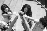 Young activists joining hands wearing rainbow bracelets, promoting lgbtq plus rights and equality