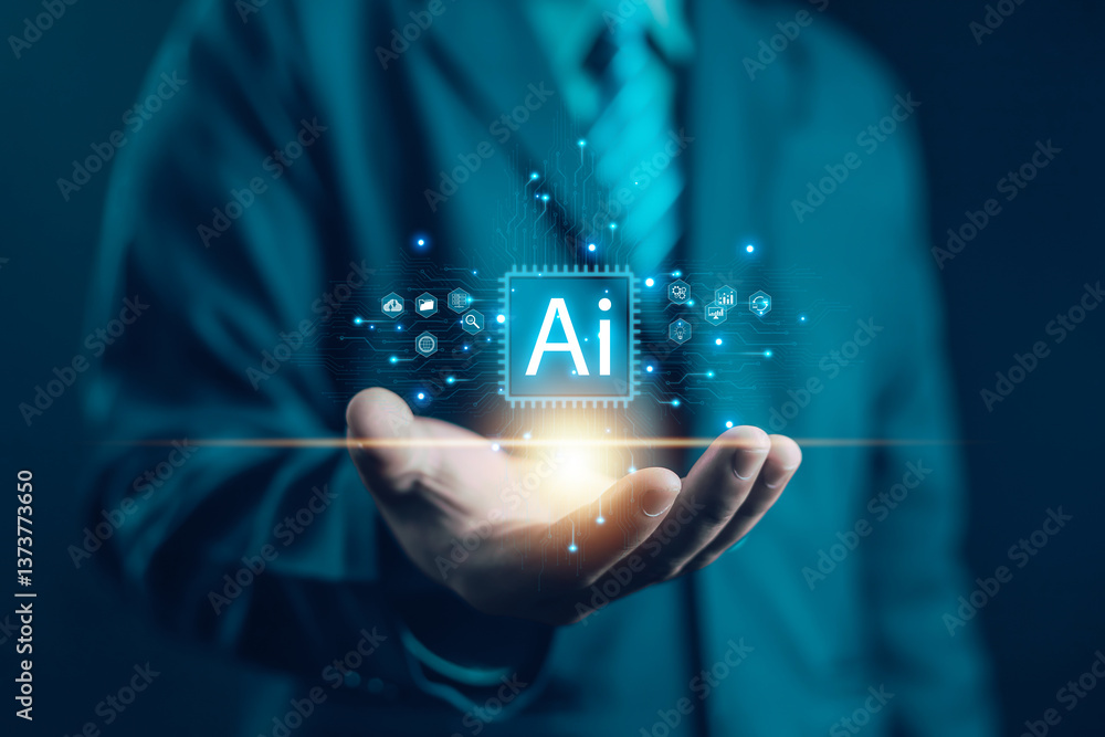 businessman using technology Global Internet connect Chatgpt conversation Chat with AI, Artificial Intelligence. using command prompt for generates something, Futuristic technology