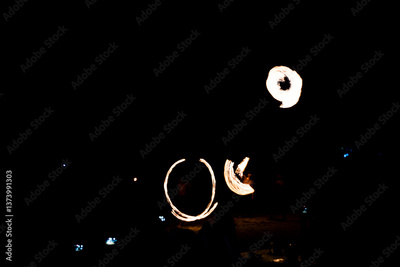 Stunning Thai Fire dance performance in Thailand. Show on the beach