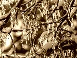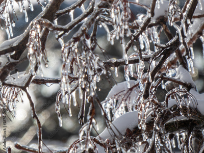 ice covered branches at sunrise