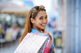 Happy young woman enjoying in shopping. Consumerism, fashion, lifestyle concept