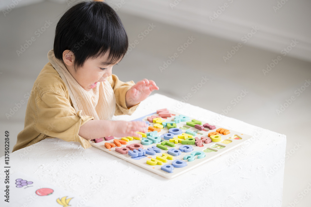 英語と赤ちゃん 知育やパズルなどの早期教育やバイリンガルのイメージ