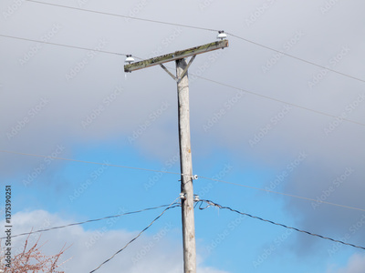 high voltage power lines against blue sky