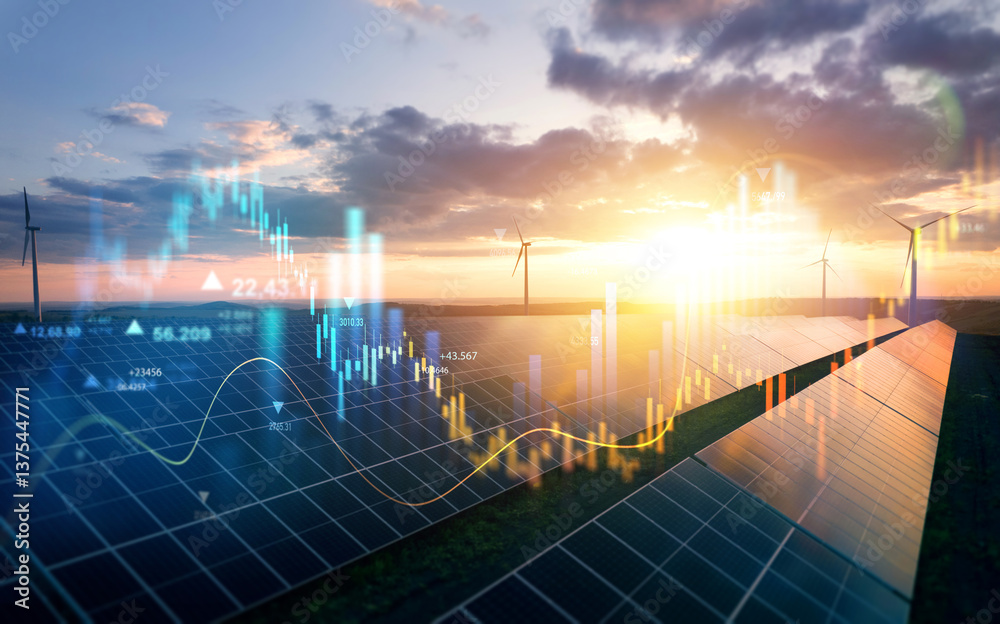 Increase in electricity prices on the world market. Green energy in full development.Investment finance chart,stock market business and exchange financial growth graph.