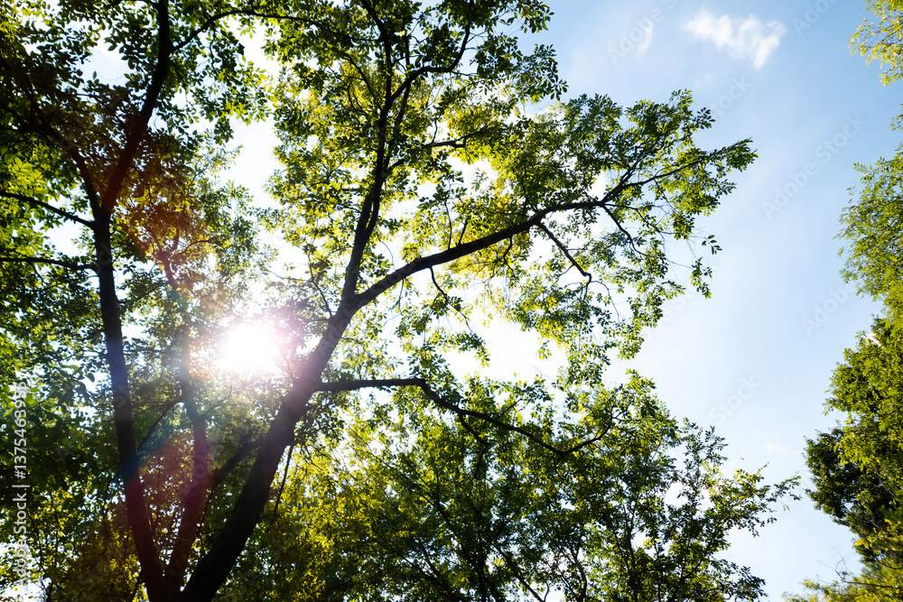 Beautiful Green trees in a city park, on a sunny day, Boramae Park in Seoul, Korea, for a background