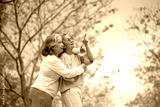 Elderly women with gray hair enjoying a beautiful moment together