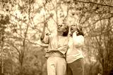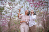 Elderly women with gray hair enjoying a beautiful moment together